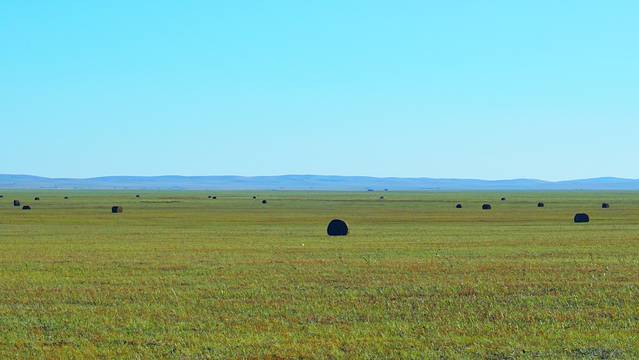 一捆捆丰收的草摆着草原上,看上去,也是一种喜悦。