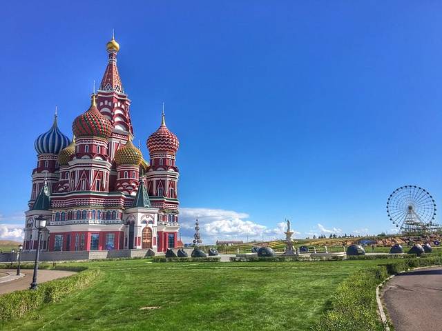除了各式各样的套娃,如同童话中一样梦幻多彩的建筑,也是套娃广场的一大看点。