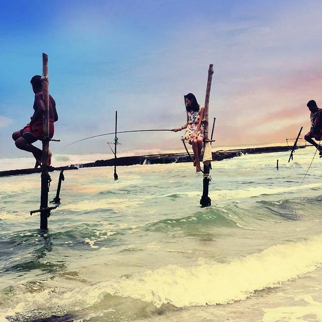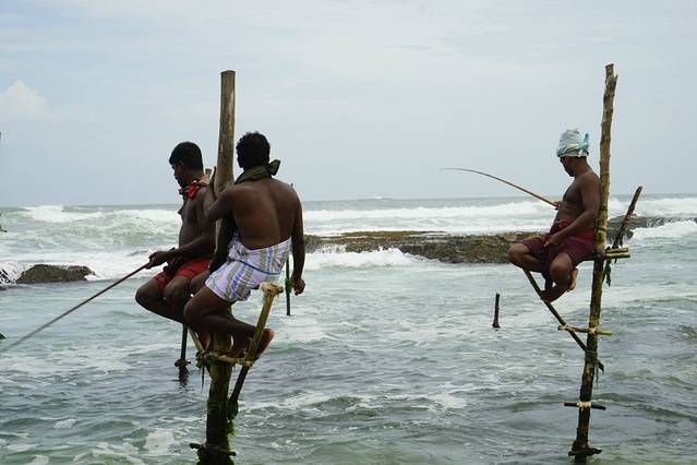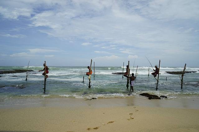 用完早餐退了房,到了我们今晚住的要塞内的酒店,放了行李就去看高跷渔夫了。如今,兰卡的高跷渔夫已经成了商业性的表演,有游客去了,他们就拿着鱼竿出来,谈好费用就开始钓鱼给我们拍照。5个人,我们给了2500卢比。