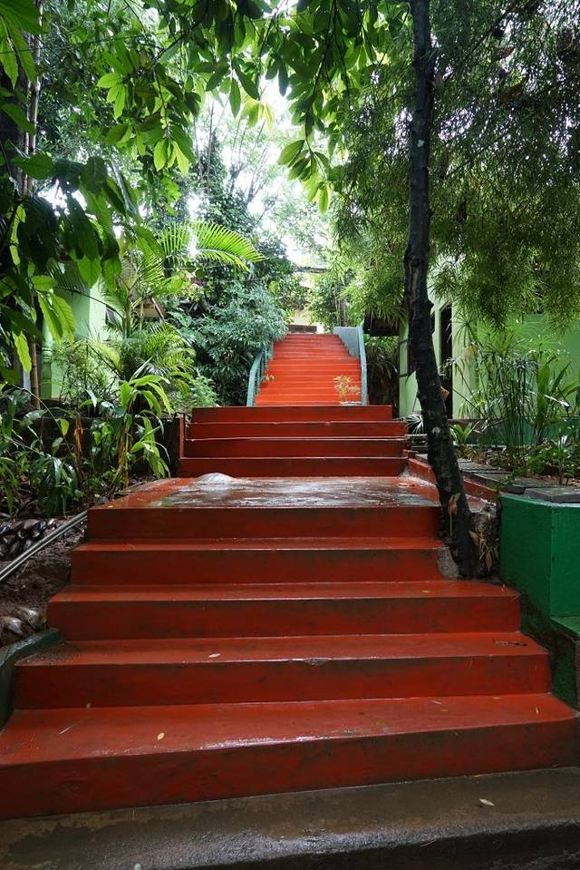 前天夜里下了一夜的大雨,早晨起来空气清新,酒店周围的植物雨水滴答,世外桃源的感觉有没有?