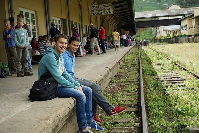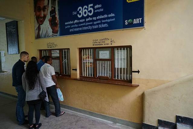 饱餐之后,坐着TuTu去了努瓦埃利耶的火车站,开始我心心念念的第一趟斯里兰卡火车之旅。斯里兰卡的火车除了一等座要事先买而且有座位号外,二等三等的都没有座位号,上火车之前到火车站现买,然后就发挥挤公交挤地铁的精神,上车占据有利座位,如果没抢到座位就只能站着。或者,干脆选择坐在火车车厢门口,那是另外一种独特的体验,就是要担心伸在外面的脚。
