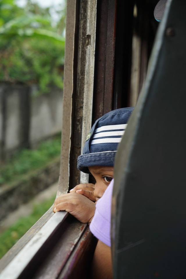 乘火车的当地小孩,好可爱
