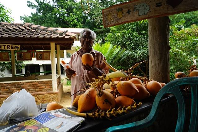 斯里兰卡大名鼎鼎的金椰子,用来解渴最好,才2.5人民币一个。注意到了吗?有个木头牌子画着:香蕉菠萝+大象=爱。好有意思,可惜没有拍全