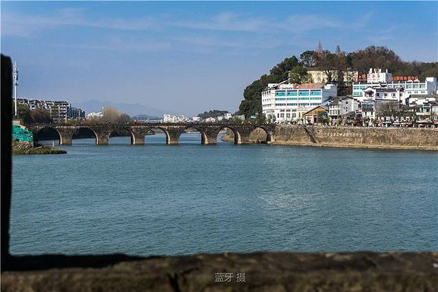 沿着老街一路随意闲逛,我们来到一座老桥旁边,叫镇海桥,俗称老大桥,镇海桥始建于明嘉靖十五年(1536年)。相传是隆阜财主戴时亮为嫁女儿独资建造,之后两次被水冲毁。镇海桥现已是屯溪重点文物保护单位,桥上已不允许通车,仅供行人、摩托车和三轮车通过。桥的两边设置了桩子,禁止小车通行。通过这座桥,就是黎阳in巷。