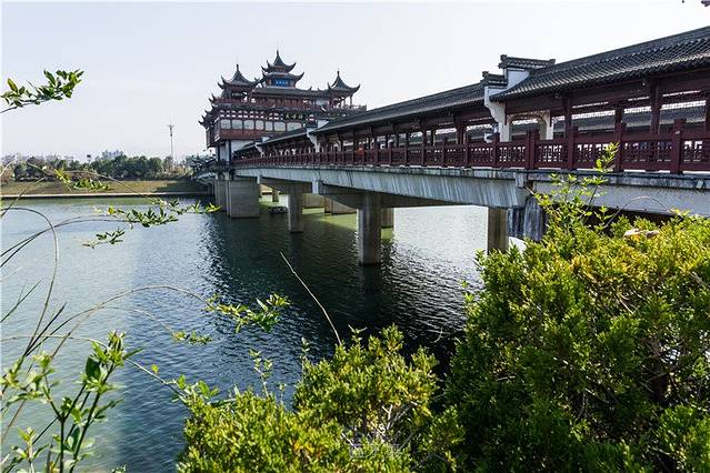 饭后,我们到码头去,站在江边看到远处有一座挺特别的桥,像是古时候的宅院廊桥,横跨在江上,很是特别。于是我们朝着桥的方向继续走。