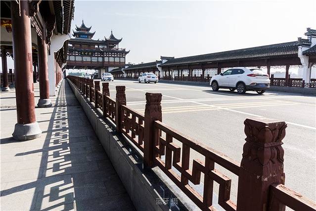 这座桥叫文峰桥,地处横江、率水和新安江三江口交汇处,是我国第一座徽式廊桥,由双向四车道、两条长廊、四个桥头亭和一座莲花阁构成,融合了古典建筑意蕴与现代交通。桥的中间是一座高达27米的莲花型观景台,我们本想上去看看,但是下面是锁着的,有点遗憾。后来在网上搜索到,桥上是一间餐厅,价格不菲,但是后来经营得挺萧条的,从网友的反应来看,餐厅并不是特别受当地人欢迎,不知道是否倒闭了。