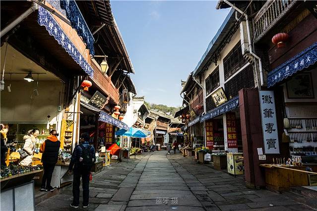 这里的建筑保持了传统的徽式风格,白色的墙体,灰色的屋檐,沿街的商铺大多是卖工艺品和特产的店铺,看过太多的商业街,对此倒也没有特别的惊喜。