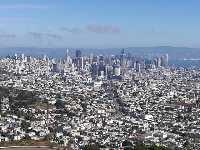吃完早饭,checkout酒店就拿车出发了,去了双峰,可以俯瞰旧金山的全貌。
