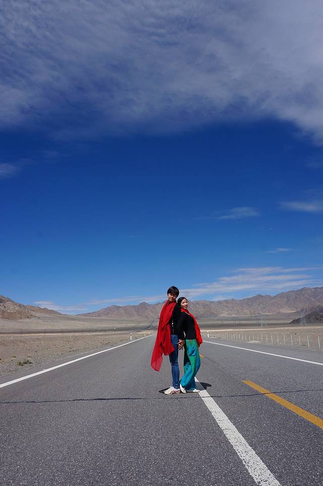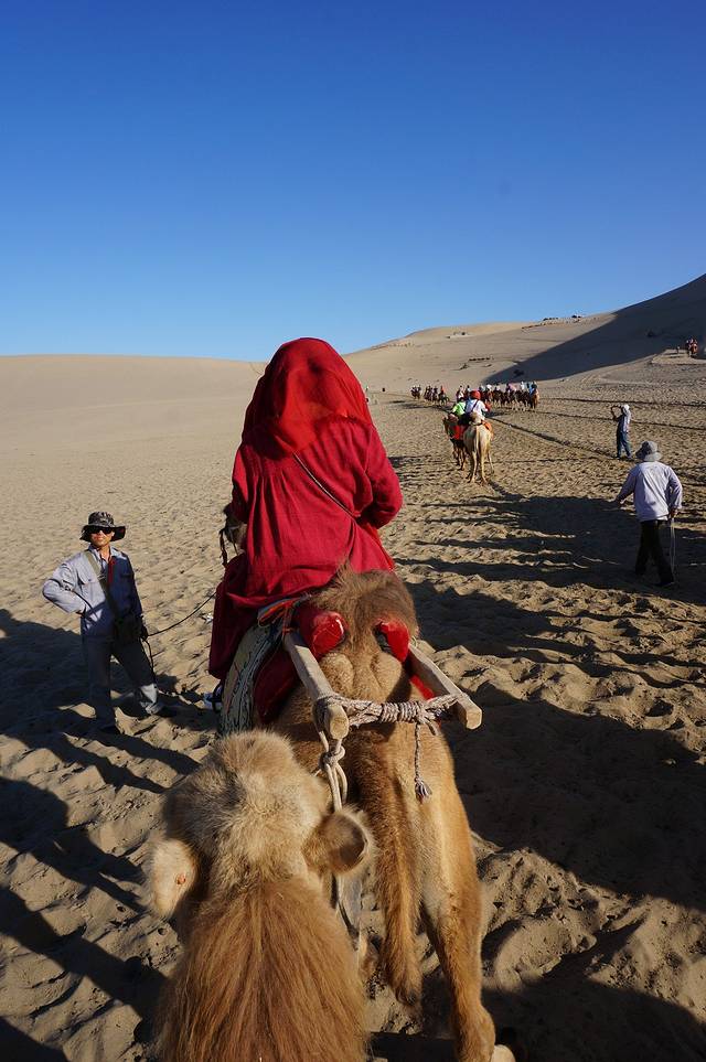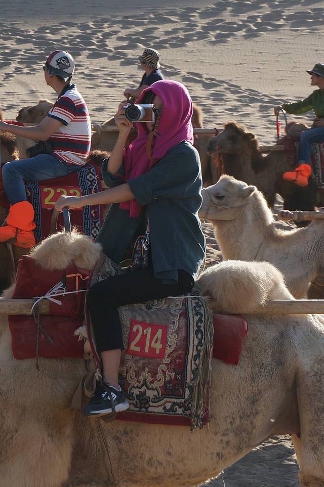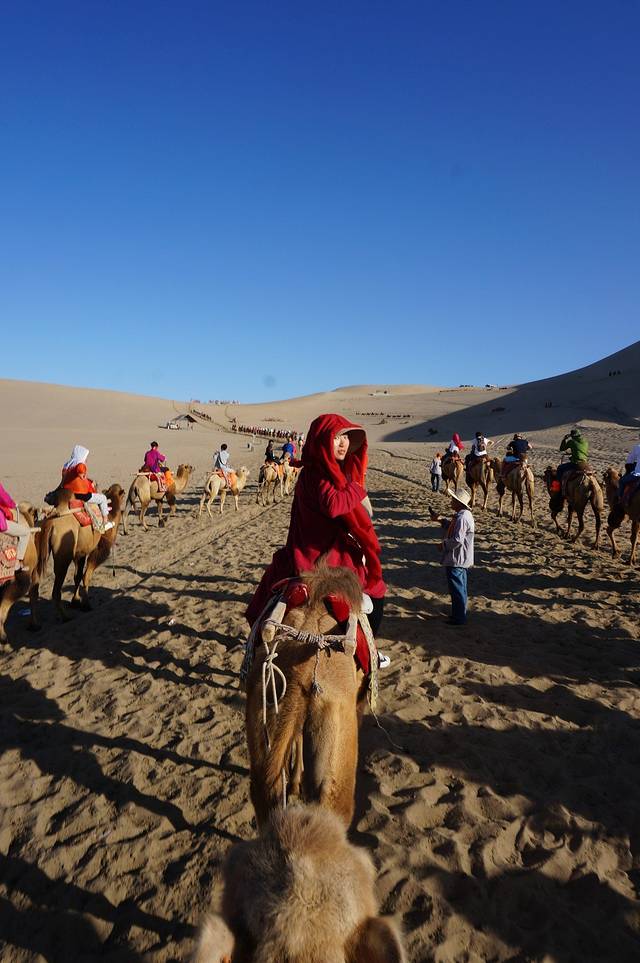 100RMB一人,返程是回到月牙泉那~~路上想要停下拍照是要花钱的哟~~所以我们充分发挥了各种拍照技巧~~硬是互相拍了每人一张纪念照~~~