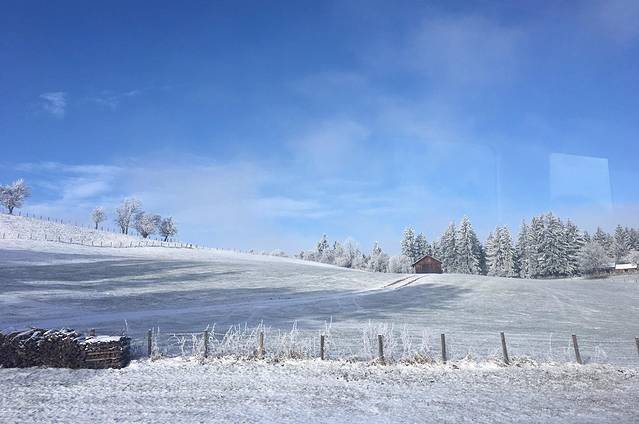 从慕尼黑到哈尔施塔特大概是3小时不到点,但那天路不熟,我妈开得慢,停停开开有4个小时。一路上的风景各种各样,有开太阳看到蓝天白云,也有雾茫茫的天灰灰。游记最开头的那段视频就是这段路上拍的哈。