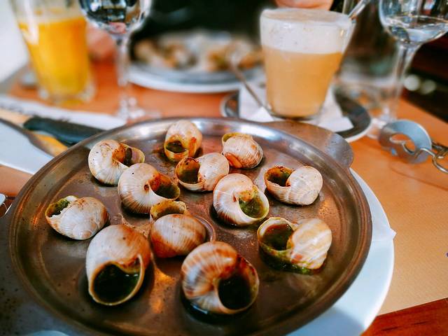 焗蜗牛也很好吃,面包还可以蘸绿色的酱吃。