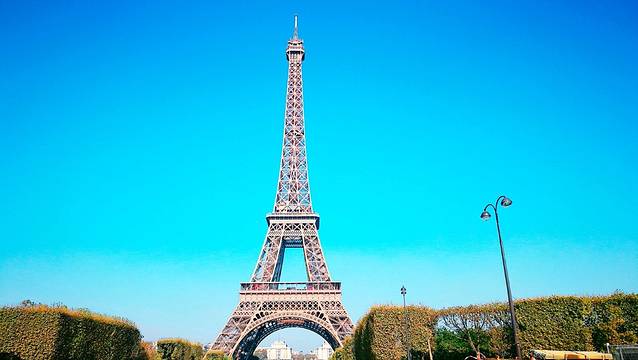 夏佑宫走下来过马路就是埃菲尔铁塔。