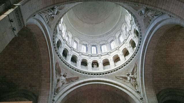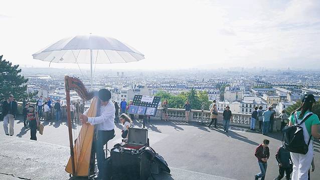 说起蒙马特,对巴黎略有了解的人,首先想起的,也许会是俯瞰着巴黎城的圣心教堂。蒙马特高地至高点就是这个洁白的教堂,位于2号线Anvers站,下站步行就到。这里参观不需要门票的,免费。在风和日丽的日子里,在圣心教堂前宽阔的台阶之上,经常会有艺人演奏着各种乐器。在月琴清凌如流水的音乐声中您可以从圣心教堂所在的蒙马特高地放眼巴黎城,不用付费您也可以享有鸟瞰全巴黎的权利。
