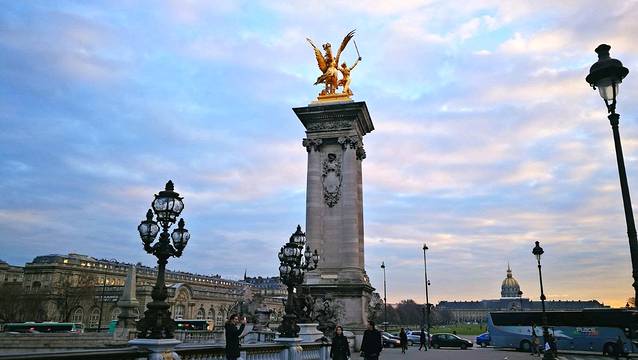 地铁invalides站。日落之前在这里路过。在飞机上看了一部电影《Me before you》,结尾的时候女主角的身影从这里走过,就对这个地方充满了兴趣。我从协和广场沿着塞纳河边走到这里,景色确实很棒。在车水马龙的桥上,一旁有很多摄影师正在这拍广告和硬照。