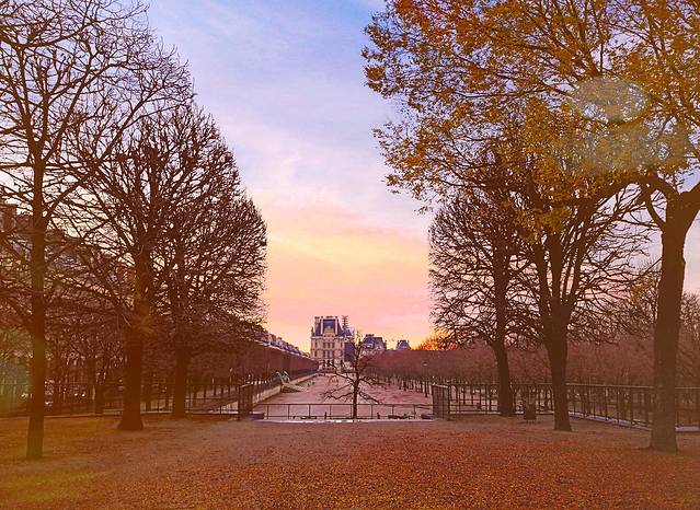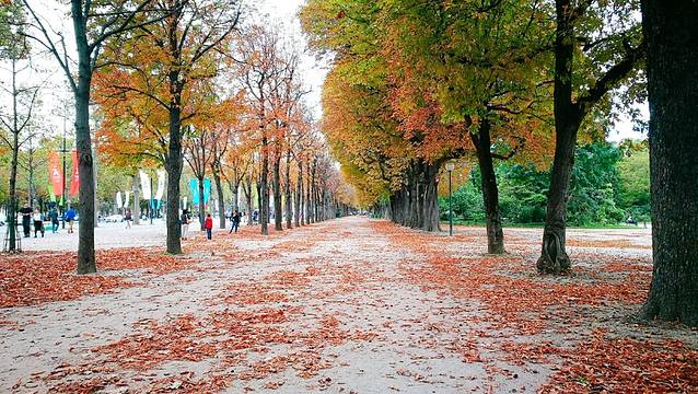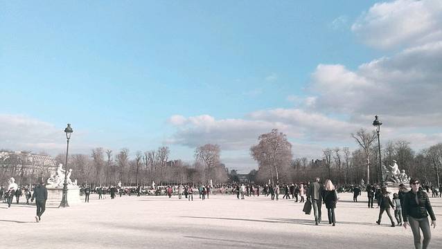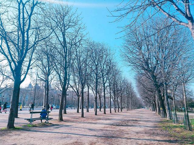 我没事的时候很喜欢在这里看日落,看鸽子。这里非常的大,树枝桠都是修剪成整整齐齐的方形形状。这里是卢浮宫和协和广场之间。从协和广场走到摩天轮,这里就是杜丽乐花园的入口,花园的入口进去,一直穿过花园就可以到达卢浮宫。