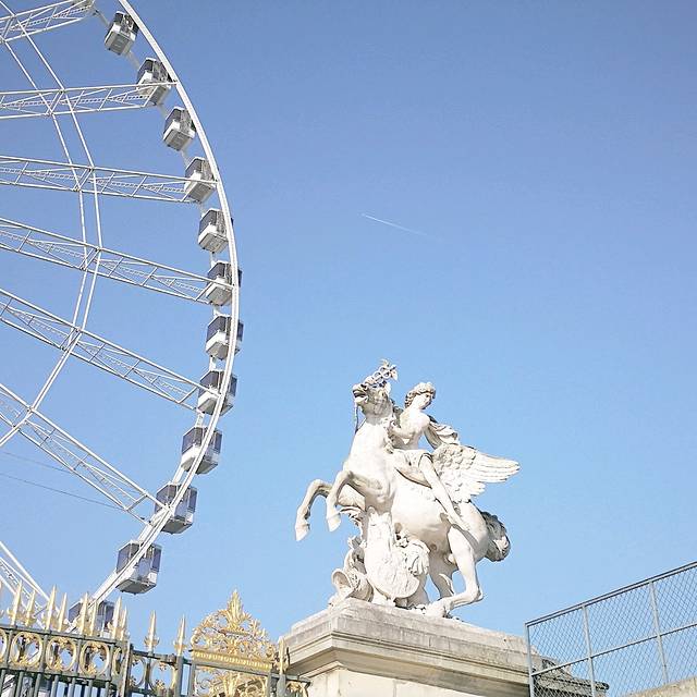 我从居住的地方,经常会步行到这里,很近。这是一个很著名的广场,路易十五兴建。喷泉和埃及总督送的方尖碑在中央,在这里是香榭丽舍大道另一头,能远远的眺望到埃菲尔铁塔。还有杜丽乐花园前面的摩天轮。