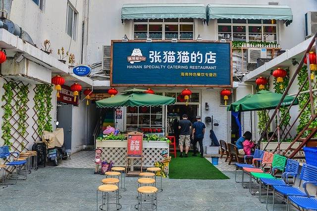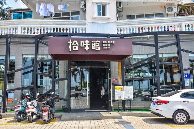椰梦长廊旁的海景花园店是拾味馆的旗舰店,紧靠大海,门面不大,但里面还是有着较好的环境