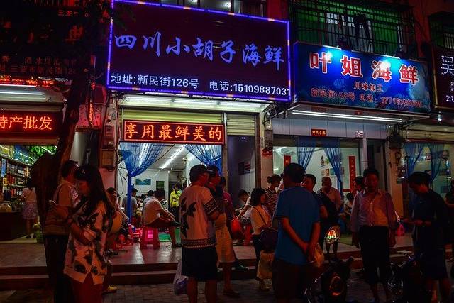 买好了海鲜,在第一市场的背后,就是海鲜加工一条街,很多拉客的小妹,凸显着竞争的激烈,但整条街上永运都会排队的一家肯定是开了十来年的四川小胡子