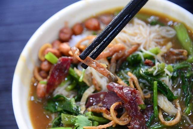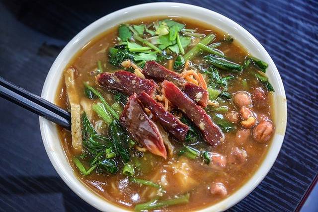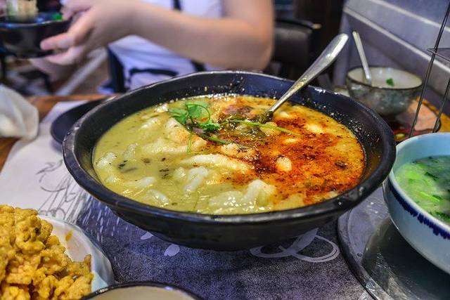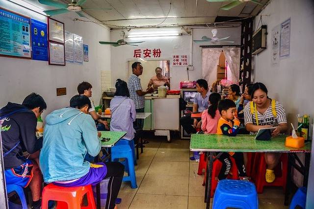 我个人觉得最好吃的后安粉,则是以猪骨、粉肠、猪肚熬汤,下石磨碾制的薄粉,汤料如同日本拉面一般的浓郁,而薄粉也非常入味,堪称绝配。特别适合小孩,反正我家孩子是追着要吃。