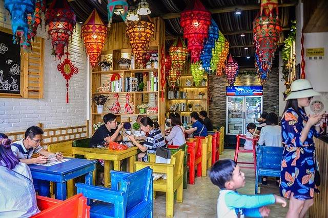店铺都是打造成了这样大排档的风格,比较简单随意
