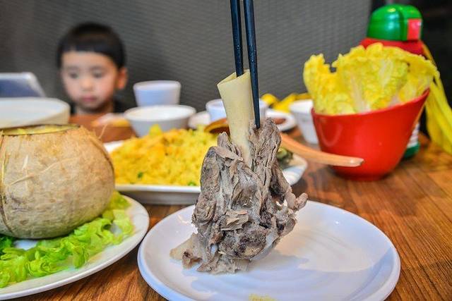 这是三亚人最拿得出手的一道海南名菜了,用椰子水(我们习惯叫椰奶)做汤底,选上好的文昌鸡小火慢炖,汤汁中既有椰子的清甜,又有鸡肉的鲜香,滋补又美味,真的是不可错过的一道美食盛宴啊。