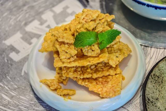 店内的必点--没吃过的海鲜泡饭,第一层是海鲜蔬菜汤,第二层是煎得脆脆的粟米,第三层是葱、姜丝和小菜,吃前先将粟米用勺子舀到碗里,然后加海鲜汤,加葱姜,鲜美得让你合不拢嘴,特别是脆脆的粟米,是小孩子的最爱。