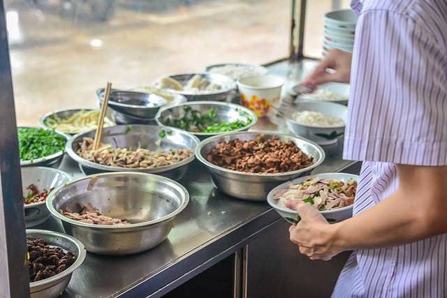 他家的粉汤底和佐料都保持了较高水准,起锅后可以选择添加海鲜、牛肉、猪肚等各种搭配,价格从10-15元不等,如果口味较重的,还可以选择干粉扮佐料,也各有风味。