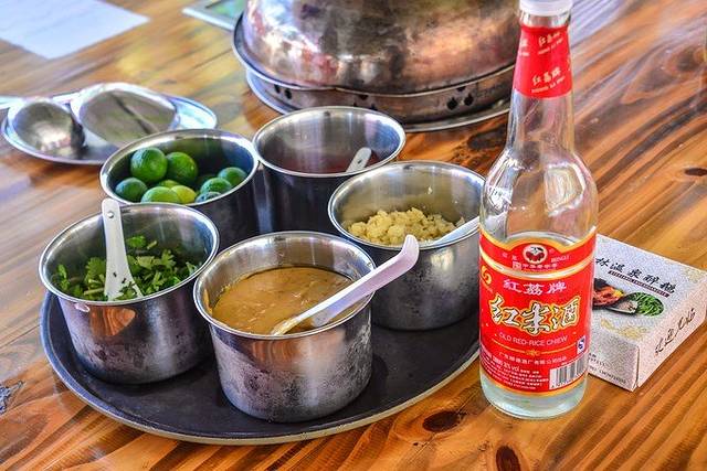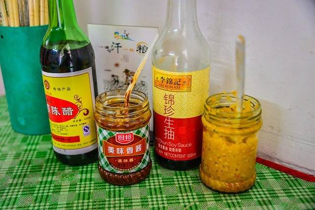 桌上有各类调料,最吸引人眼球的是海南特有的黄灯笼辣椒酱,当时在后安粉端上来之前就想过万一味道不好,加一勺辣椒酱也能吃得虎虎生风