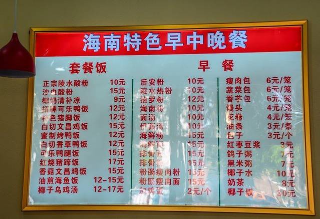 推荐菜:玉米椰子鸡168元/锅、椰子芋头饭5元/碗、海南鸡饭3元/碗、传统海南粉38元/份