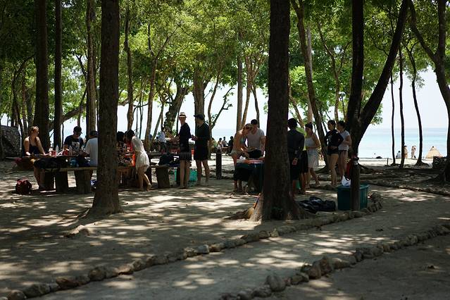 中午上洛克岛的海滩吃饭。