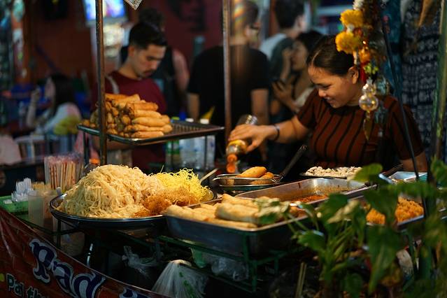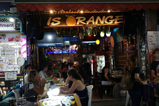 考山路的小吃没什么,跟国内的各种小吃街差不多,就是换了泰国的食物。不同的是,这里的夜市全是酒吧,路边有重口味的烤昆虫,有全开放式的脚底按摩,有各种纹身店(可纹短期纹身),还有基本都是很high外国人。综合来说还是值得一去的。