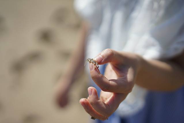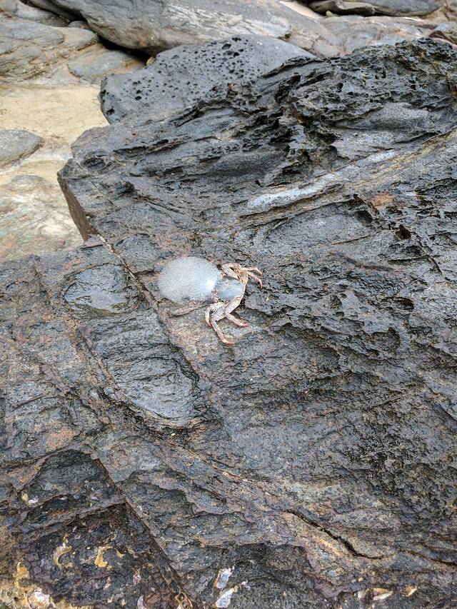 海滩上很多螃蟹跟寄居蟹