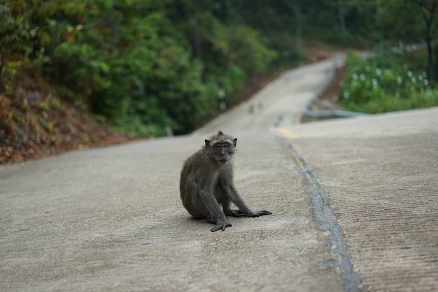 出发的一路全是猴子(前面地上的黑影都是),一开始真是吓死宝宝了,还好他们没有做出攻击行为。这只猴子跟我一样,还没有睡醒。