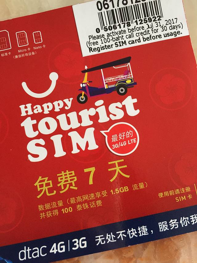 在签证的时候,店家推荐了泰国7天HAPPY卡(一张39元,流量不限,可通话),真心好用,如果你出行不超过7天,强烈推荐使用。相比wifi,HAPPY卡的好处就是只需带一部手机,不用担心wifi没电,不用开通手机国际漫游,省事省钱方便。