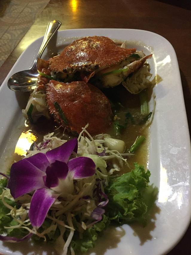 餐厅有新鲜的海鲜可以供你挑选然后让厨房现做,价格挺实惠,完全不会坑你呢。点了蟹的时候,服务员带我去选,我选了两只,然后有人负责称重,称完服务员带我到前台,我以为要我结账。结果她拿起计算机告诉我,我选的蟹一共多重,按斤算一共200多B,问我可以不。突然被这种服务给感动了。跟那时去三亚的海鲜市场被一路烦着跟着去挑海鲜,最后计价还故意多算钱的经历行程鲜明的对比。