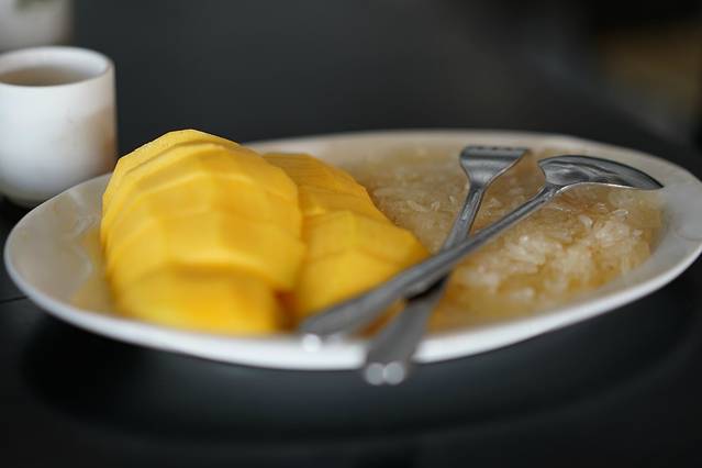 在附近的餐厅随便找了一家坐下,其他菜品一般,但是这个芒果糯米真的要点赞。店名没有留意了,不过泰国的芒果糯米是主打,估计随便一家都不会难吃。亚航的飞机上也有,但是亲测一般。