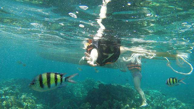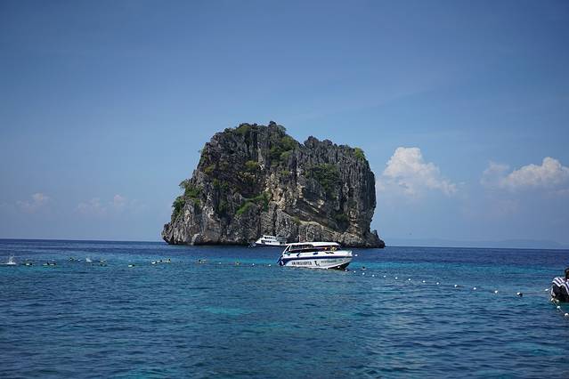 在洛克岛稍作休息,感受美景、比基尼与海滩后,就前往哈岛进行第三次浮潜了。相比洛克岛,哈岛更显清静,没有长海滩,鱼也少一些,但更多珊瑚,并且三面环山,有着另一番风味。