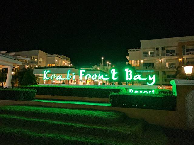 酒店翻译叫”甲米海湾前线度假酒店“的,不知道为啥这儿定位叫”前度“,莫名搞笑啊。