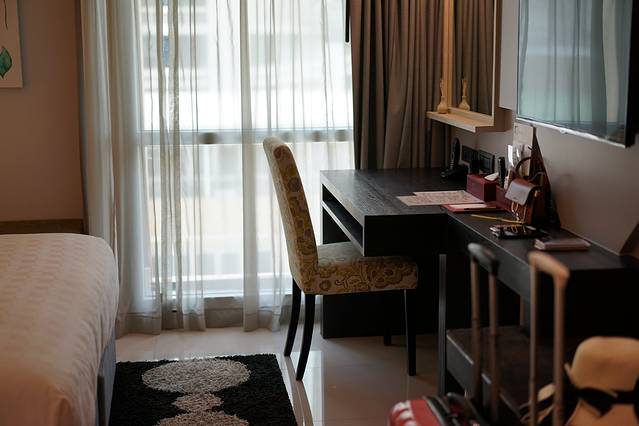 在曼谷入住的酒店是曼谷阿速三叶草酒店,价格是440rmb一晚(含早餐),环境很清新,大堂弥漫着香茅的味道,很舒服,酒店的房间也很舒服,难怪booking上的评分高达9.3分。酒店位置不错,性价比高。酒店顶楼是一个透明玻璃的泳池,晚上可以看曼谷夜景,但是泳池太小实在无法游泳。泳池旁边是酒店自家的小酒吧,晚上可以在这儿喝着小酒吹吹风。