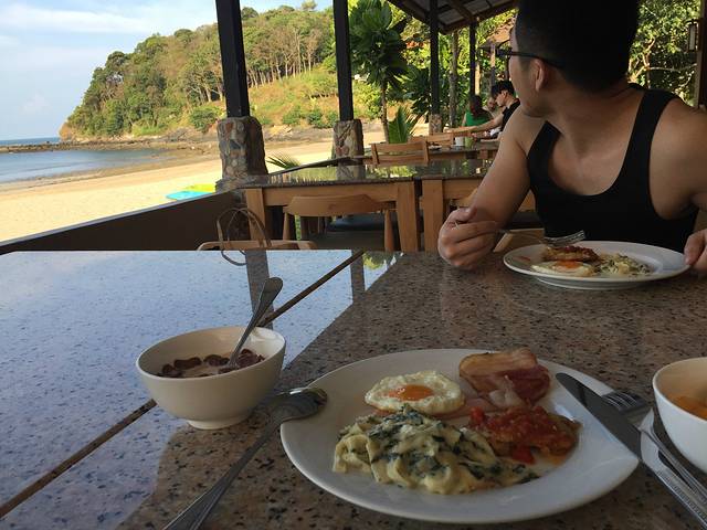 PS:兰塔岛上的酒店跟餐厅基本上都是沿着海边发展的,但并不是每一个酒店都有私人海滩,有些酒店的宣传图片也可能会误导人,看着像是直通海滩的,但其实还有经过马路跟再走一段才到。一日游的时候有两个中国妹子就跟我吐槽说自己住的酒店不好,根本不在海滩上,被酒店图片骗了。所以建议订酒店的时候一定要看评论,很值得参考,基本上所有的优缺点你都可以看到。这个酒店在booking跟agoda上的评价很好,连淘宝客服都跟我说是个好酒店来的。但是酒店房间没什么亮点,还有一点不好的就是happy卡在酒店没有服务信号,而且酒店的wifi挺不稳定的,没网路会死星人慎选。嗯嗯,除了网路不好,路程稍远之外,没有其他可以挑剔的了。一晚600rmb的园景房(含早餐),住得我跟陈生直呼抵到烂,因为酒店的服务真的很好,风景真的很美,环境真的舒适,哈哈哈~