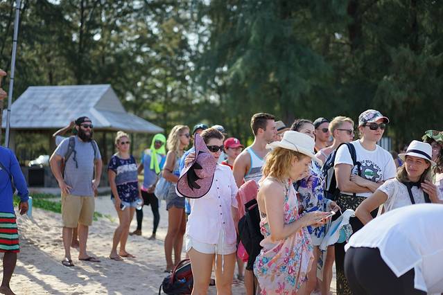 淘宝店家将一日游服务转给当地旅行社,旅行社安排车接我们到集中点等船(有些游客是由船直接到酒店的沙滩上接的,可能是看酒店位置的吧),好多外国人也在这儿等海岛游。看到这张照片,你应该可以感受到兰塔岛上外国人与中国人的比例,中国人真的是不到十分之一。以至于同船的妹子看到我们很兴奋的说,终于见到中国人了,她说昨天自己去了四岛(不好玩),全船都是外国人,只能相视而笑。哈哈哈!