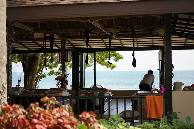 海滩入口左边就是酒店的餐厅,全海景餐厅。