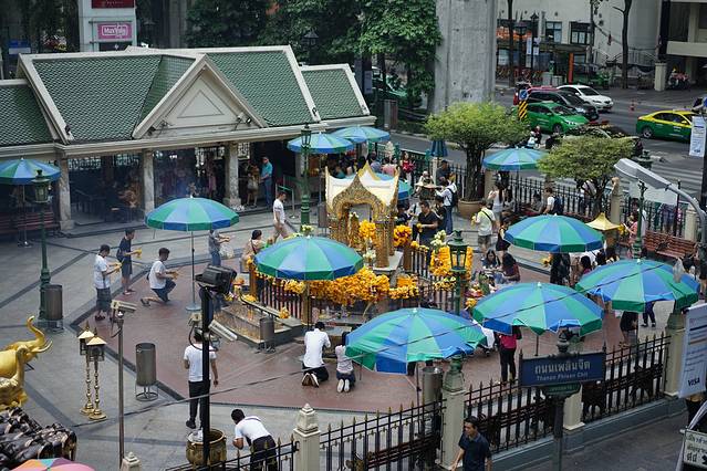 曼谷的四面佛听说很灵验,所以名字很响,但却不是想象重有着宏大的庙宇的景点。