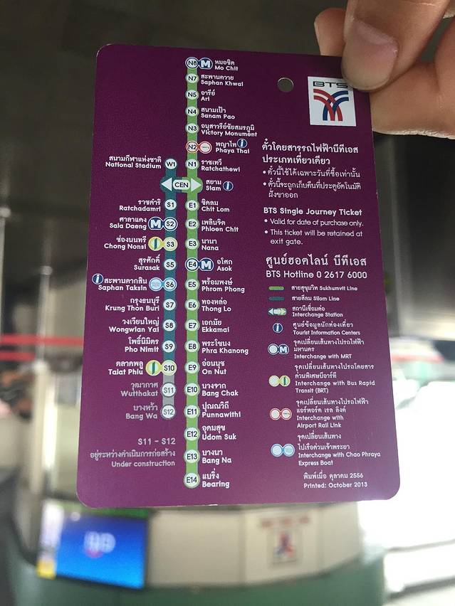 这是泰国BTS卡的背面,有线路指引。