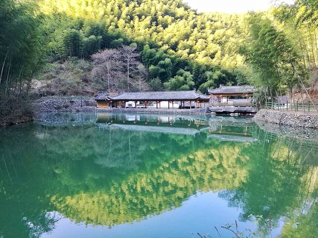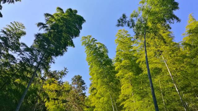 骑着骑着,路上的毛竹林越来越多,就感觉要到了。穿过一条隧道就真的到了木坑竹海大门。木坑的毛竹林可能没有人定期去砍伐,所以都长得很大很密,从景区门口湖边的一条阶梯路向上爬,目之所及都是高大的毛竹,少有杂木。