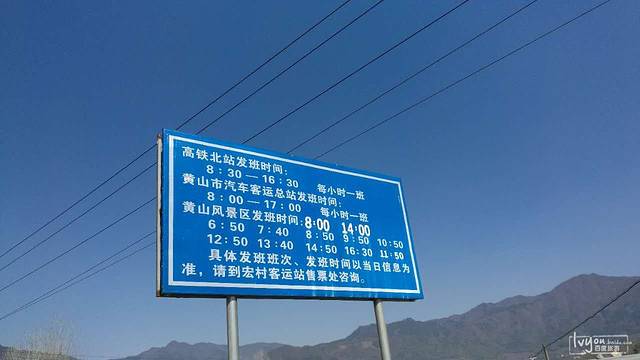 附一张蓝天白云下的班次表(宏村,售票处在检票口右边):