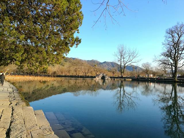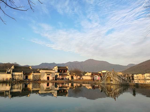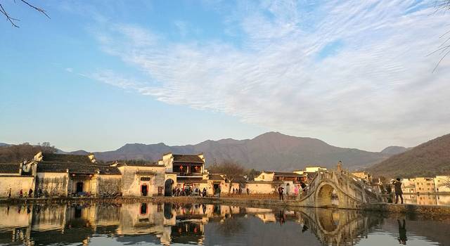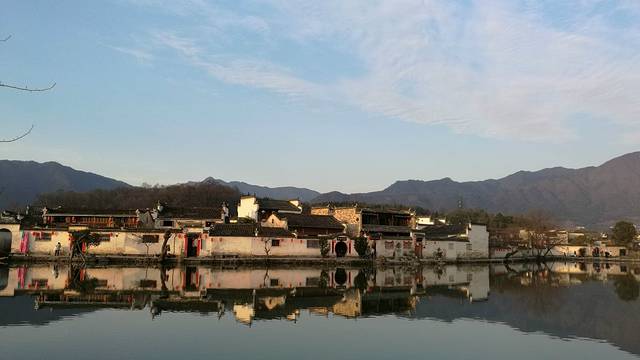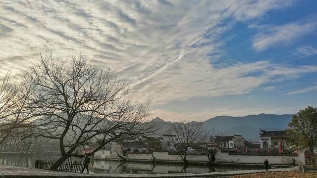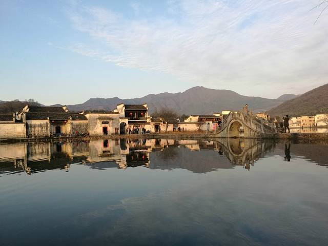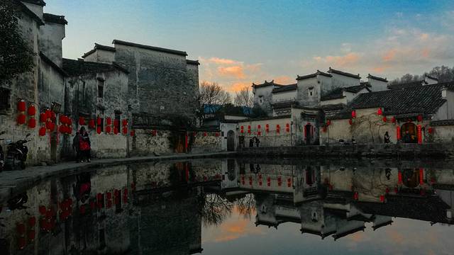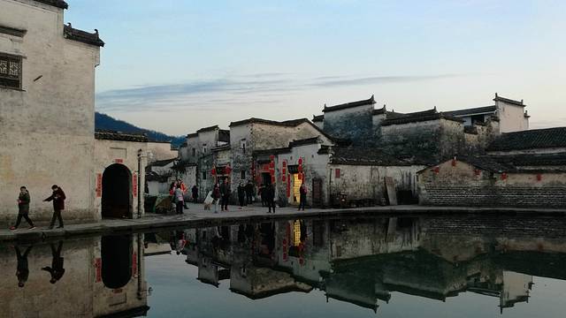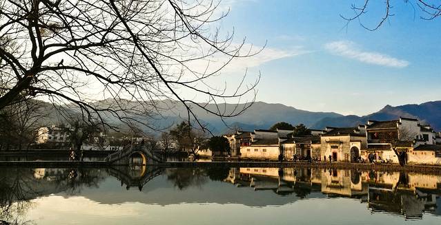 到宏村时已经是下午,走着走着天色就开始泛黄了。正好是元宵节,我期待会有很多彩灯和河灯,便不急着去吃饭。走到村边又忘村里面走,走着走着却到了南湖,太阳已经到了底,余光斜斜的罩在村子上,灰色的墙壁便有一半变成了暖色调,好安逸。初春是个很冷清的季节,人都开始活动了,但是植物还很安静。南湖边上中了一圈说不上名字的大树,都上百年历史了吧,密布的树枝,没有一点绿意;南湖的荷叶这时候也是干枯低垂着,残留着好些莲蓬都枯的发黑,莲子都掉落了。。。。年后也本是很冷清的。。。。但是这昏黄的阳光,反而比中午的阳光来的舒适,安逸,倒不觉得冷清了。