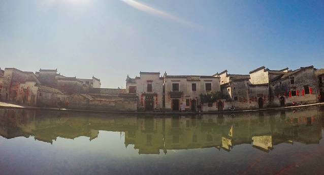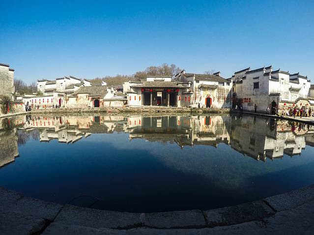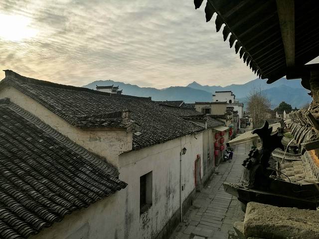 相比于西递,宏村热闹很多,南门进入便是南湖,很多游客刚入村就迫不及待的拍了起来,而我坐在客栈掌柜的电动三轮上一路颠簸的朝客栈去,只透过车棚向外窥视了一下这个村子。
