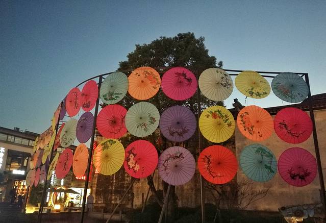 接着走,再走了一会,天色就真的黑下来了,游客就更少了,灯笼终究还是那么些,彩灯和河灯终究还是没出现,欢笑声终究还是禁锢在了房子里面。。。今晚是元宵节啊。。。