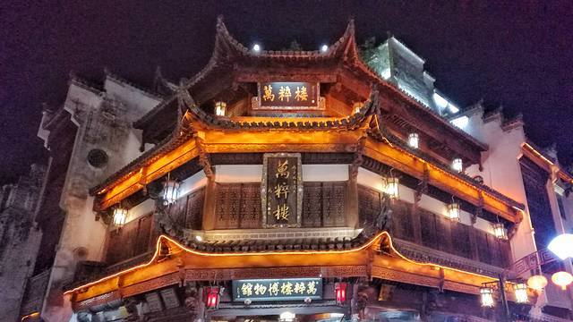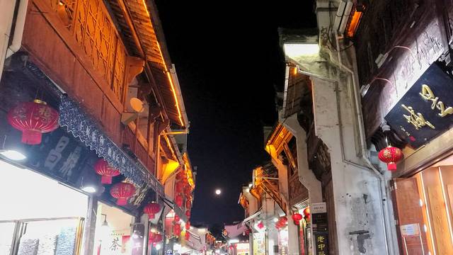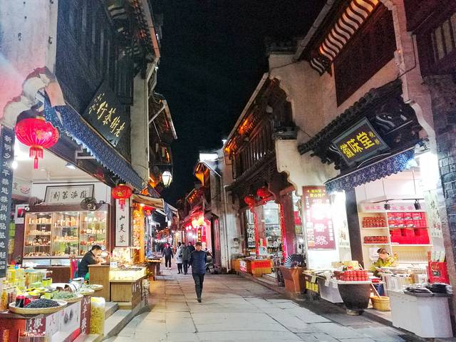 屯溪老街则是那种纯粹老街,没有华丽的灯光,没有义乌式的纪念品店。两边古色古香的铺子,买的多为茶叶,白酒和徽砚。华灯初上,万粹楼熙熙攘攘,灯火通明,拼酒劝酒的叫嚷声在整个十字路口回档,门口不乏喝的酩酊大醉的,相互搀扶,摇摇晃晃,称兄道弟;却也有店铺已经打烊,传统的门板一块接一块拼接,挡在外面的是喧嚣,留在里面的是不奉承游客的淳朴。